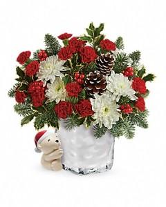 Un-bear-ably adorable, this charming polar bear can't wait to deliver happy holiday greetings and a festive bouquet of fresh flowers!