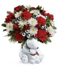 Un-bear-ably adorable, this charming polar bear can't wait to deliver happy holiday greetings and a festive bouquet of fresh flowers!